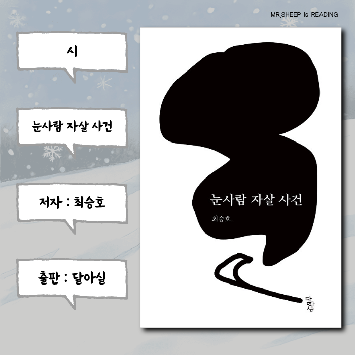 ✓ 제목 : 눈사람 자살 사건 ✓ 저자 : 최승호 ✓ 출판 : 달아실 ✓ 발행 : 2019.03.30 ✓ 카테고리 : 한국...
