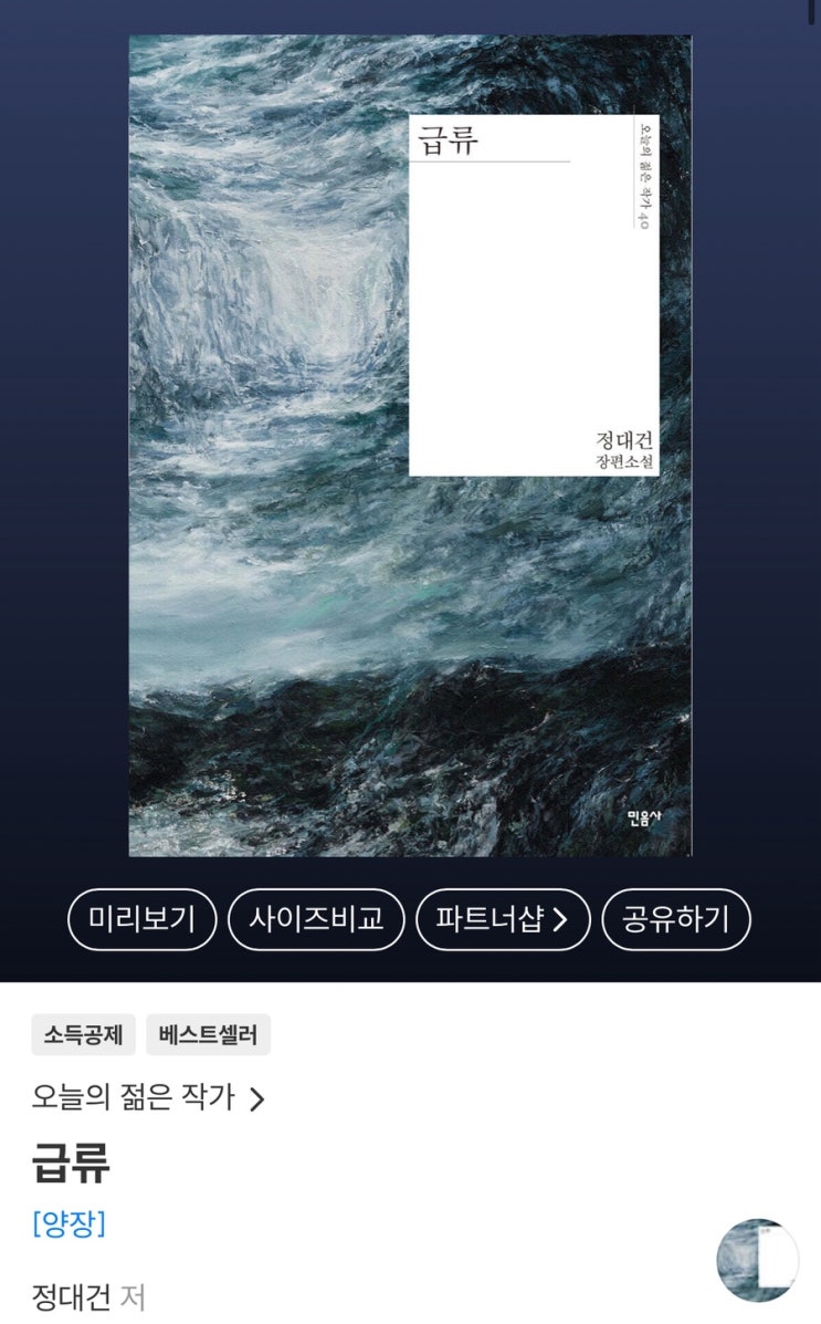소설 급류 요즘 SNS를 점령하다시피 한 책이 있다. 역주행으로 유명하다는, 정대건 작가의 '급류&#...