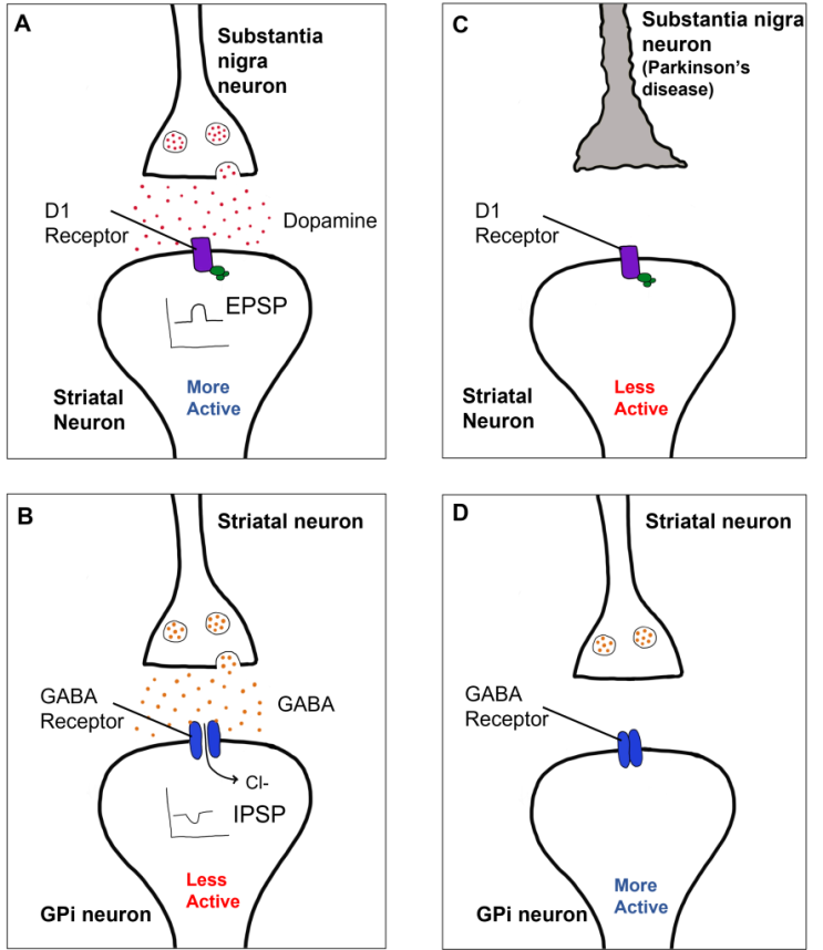 D1·D2 수용체와 운동 증상(교과서)