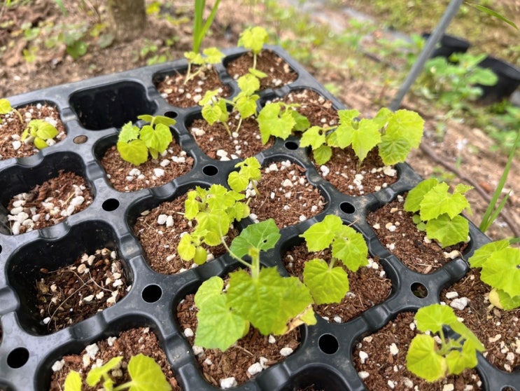 쿠카멜론 싹 옮겨심기 작업했어요.