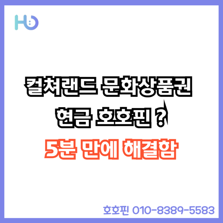 컬쳐랜드 문화상품권 현금 호호핀 5분 만에 해결함