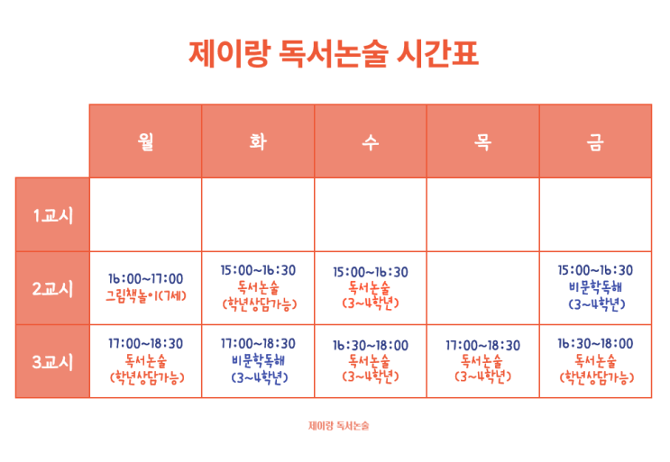 침산동 제이랑 독서논술교습소 2025년 하반기 새 시간표 입니다:)