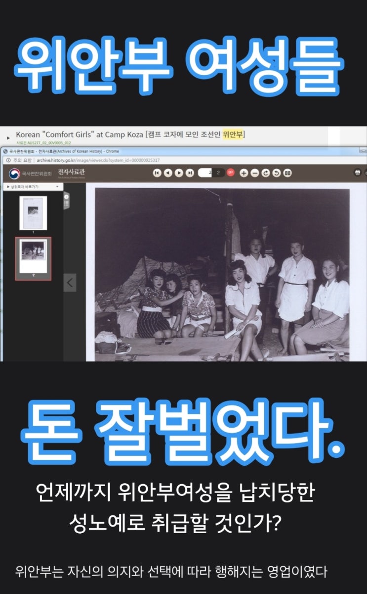 위안부 여성들(성노동여성)인데, 돈 잘벌었습니다. 위안부 여성을 납치해서 강간, 강금, 폭행, 성노예(성착...