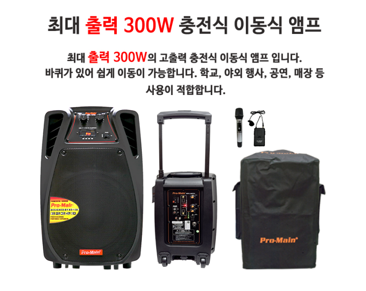 블루투스이동식선거음향PRO-MAIN 충전식프로메인MPS-110FCII 최대 300W앰프무선마이크2채널