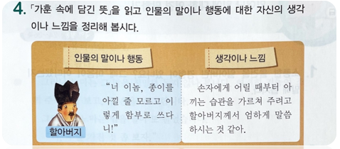 얼마 전 수업 준비를 하며 초등학교 4학년 교과서를 보고 있었다. [가훈 속에 담긴 뜻]을 읽고 인물의 말이...