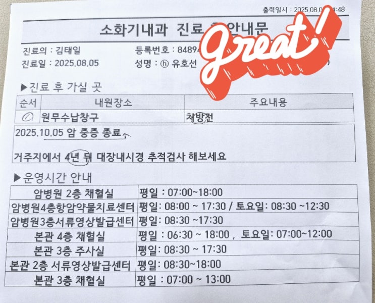 5년 암투병 끝~ 마지막 진료 / 앞으로 재발 없도록 잘 관리해서 인생 2막 시작하렵니다.