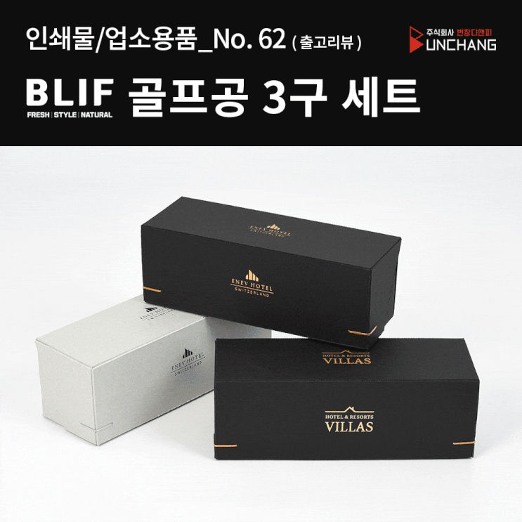 (인쇄물/업소용품. 62) BLIF 블리프 골프공 3구 세트 UV인쇄.[ 골프공 인쇄, 골프공 패키지, 골프공 세트, 골프공 고급 패키지, 코너버리 종이 케이스 ]