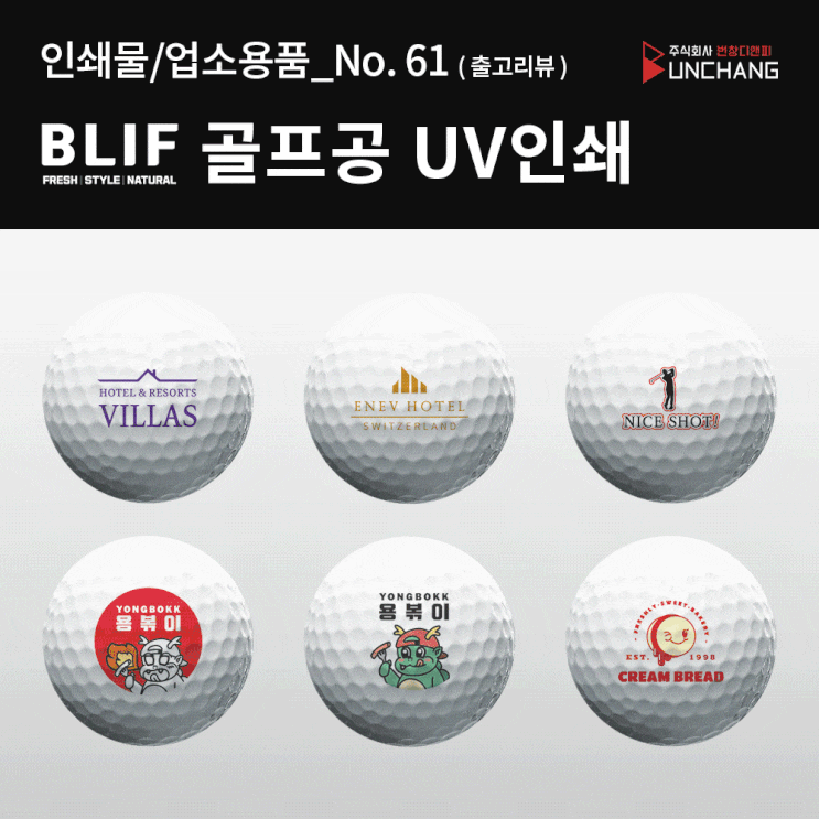 (인쇄물/업소용품. 61) BLIF 블리프 골프공 UV인쇄.[ 골프공 인쇄, 홍보용 골프공, 판촉용 골프공, 풀컬러 UV인쇄, 코너버리 종이케이스 ]