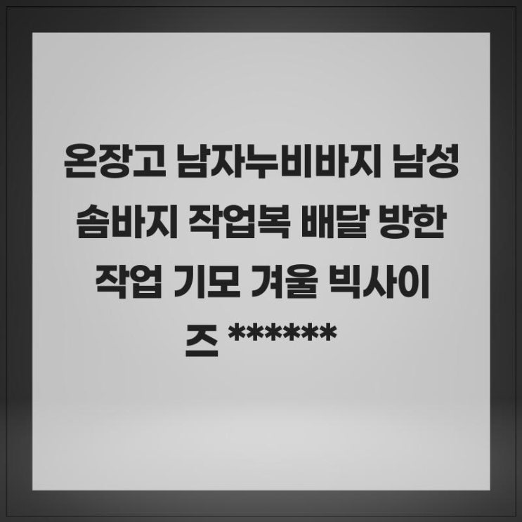 겨울이 다가오면 따뜻한 옷차림이 필수적입니다. 특히 야외에서 일하거나 활동하는 분들에게는 더욱 그렇죠...
