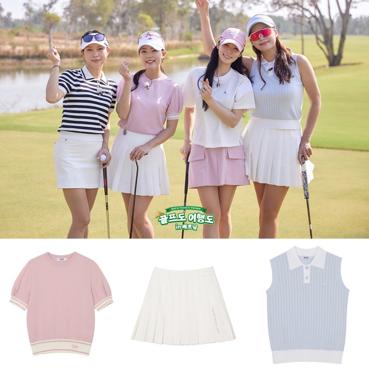 아페쎄 골프 여성 골프웨어/ SBS골프 골프도 여행도에서 박진이, 전지선, 박보경, 김서영 골프 치마 & 반팔 베스트 & 티셔츠 코디