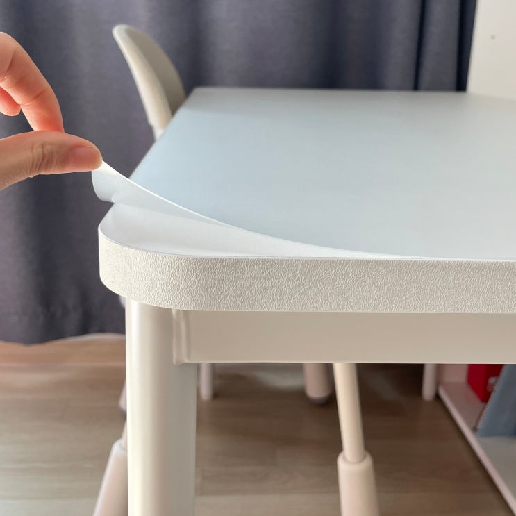 화이트 책상 좀 더 오랫동안 깨끗하게 쓰고 싶으시다면 투명 향균 데스크매트 추천드려요 :) 아이가 초등학...
