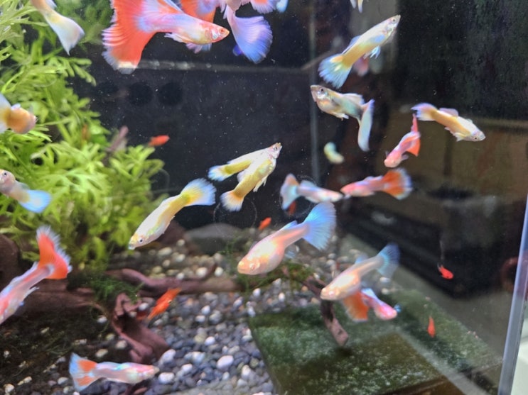 색색의 구피와 플래티 물고기를 보고 있으면 재미있다 아주 작은 새끼들도 있기에 어쩜 저렇게 작고 귀여울...