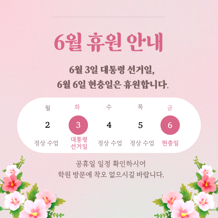 미리캔버스 : 피아노학원 6월 휴원 안내 이미지