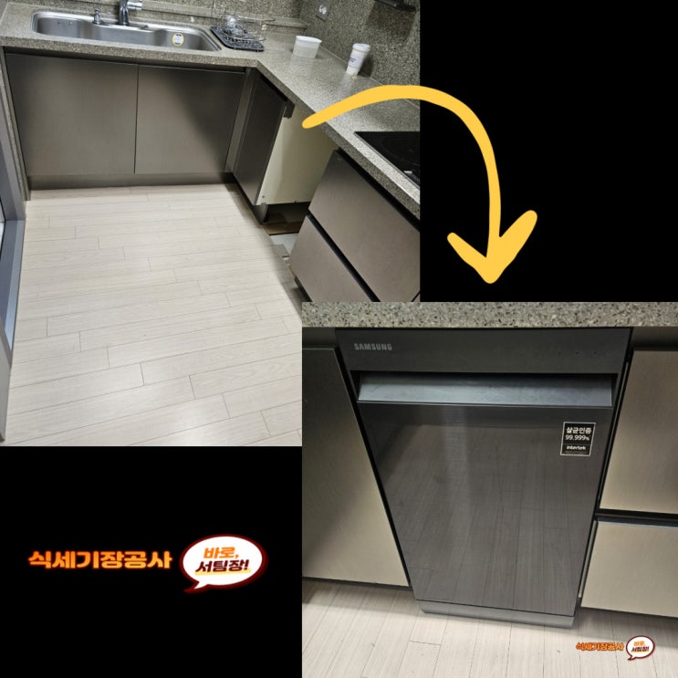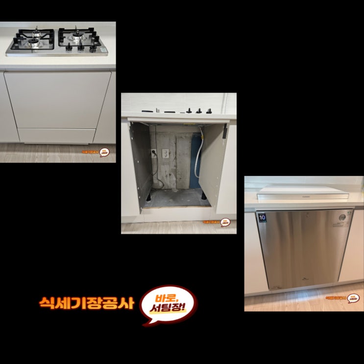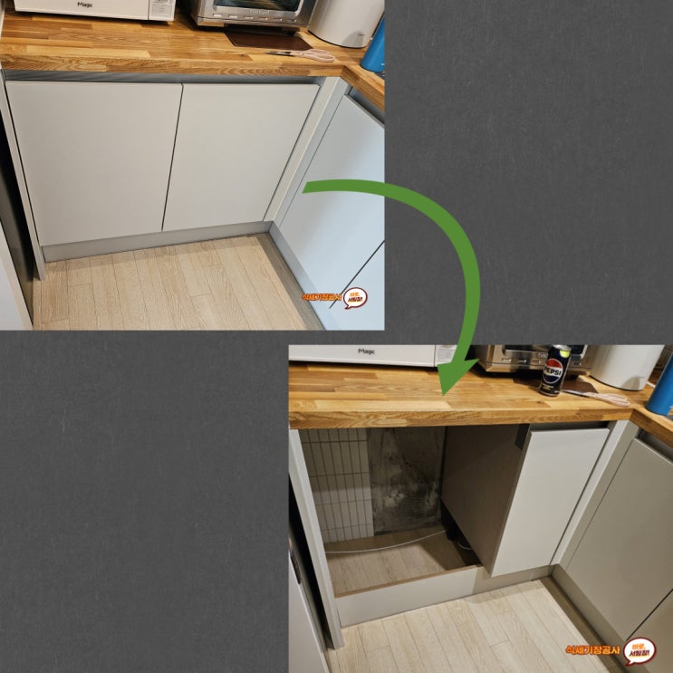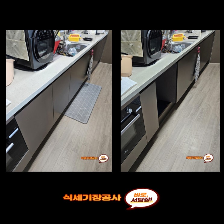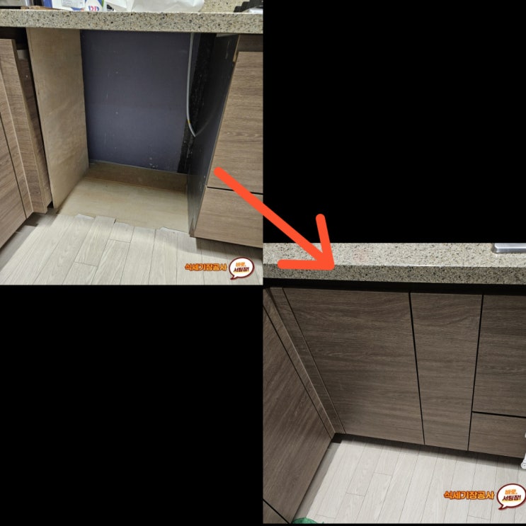식기세척기장 공사하여 전세집에도 설치 가능하게 작업한 시공 내용 안내입니다. [식기세척기장 공사는 싱...