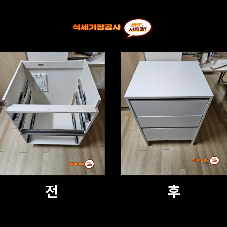 오늘의 싱크대 하부장 시공 알아봅니다~! "분리한 수납장 커버 제작" "단독 사용" 빌...