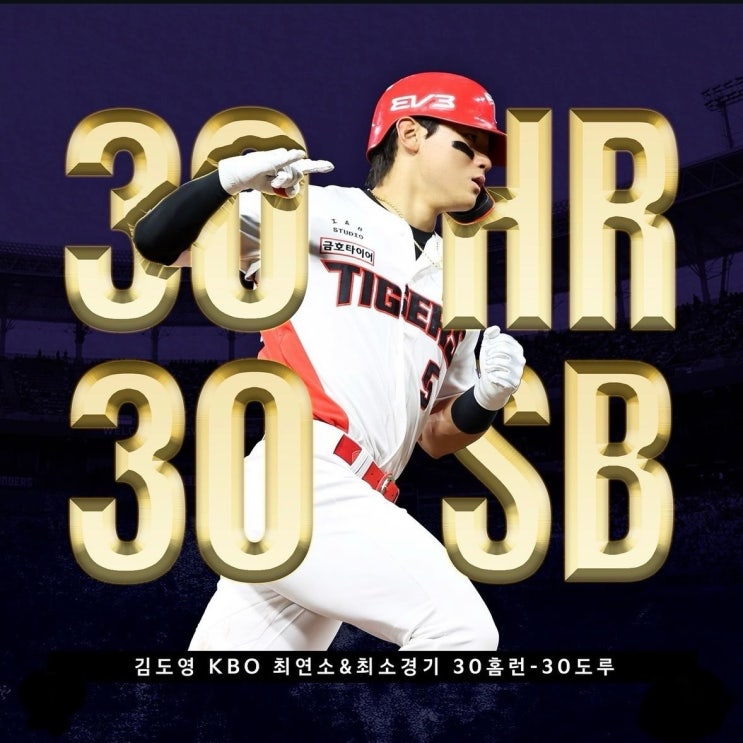 기아타이거즈 김도영 선수, 역대 최연소 최소경기 30홈런 -30도루 기록 달성