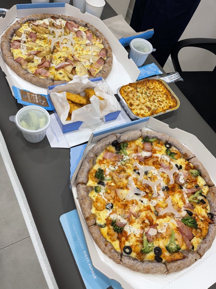 일은 끝났지만 모두들 모여 맛있게 저녁으로 알볼로 피자를 먹고 직원들 교육하기 하루하루 발전하는 삶을 ...