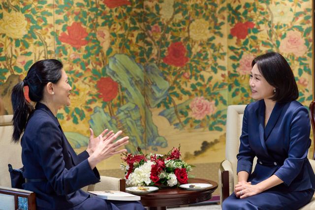 김혜경 여사가 30일 경북 경주박물관에서 캐나다 총리 부인인 다이애나 폭스 카니 여사와 만나 우의를 다졌...