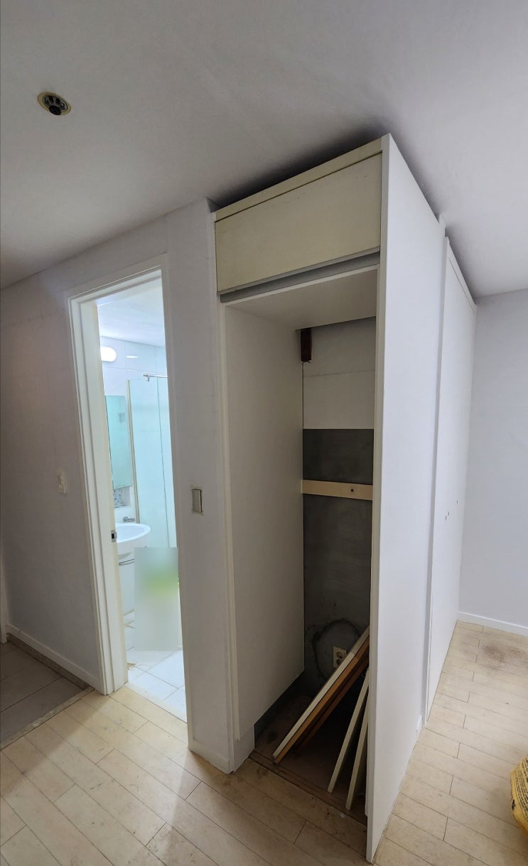 삼성역 두산위브 오피스텔 가구 시트지 필름 교체 나무로 된 부분 : 옷장, 신발장, 욕실문 붙박이 : 냉장고...