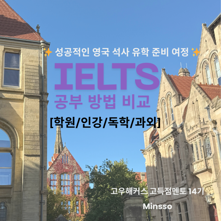 [고우해커스 고득점멘토 14기] 성공적인 영국 석사유학 여정 #2. 아이엘츠 입문자를 위한 공부법 [학원/인강/독학/과외]의 장단점 비교!