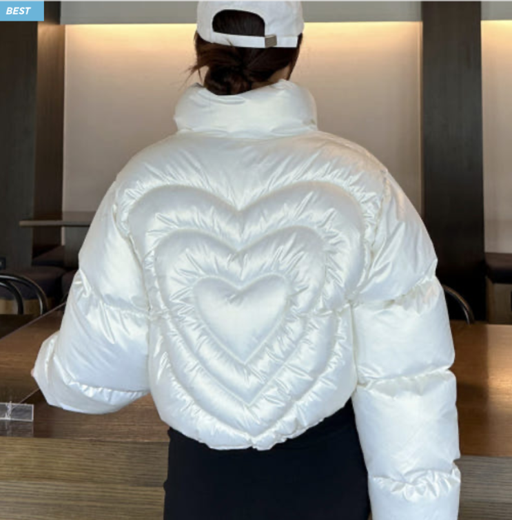 [패션]겨울에도 귀여움 터지는 숏패딩 추천: 빵빵하트숏패딩(화이트, 핑크, 실버)