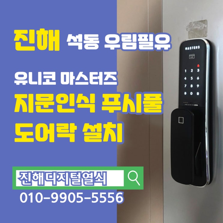 진해 석동 우림필유 유니코 마스터즈 지문인식 푸시풀 도어락 설치 진해 24시 열쇠