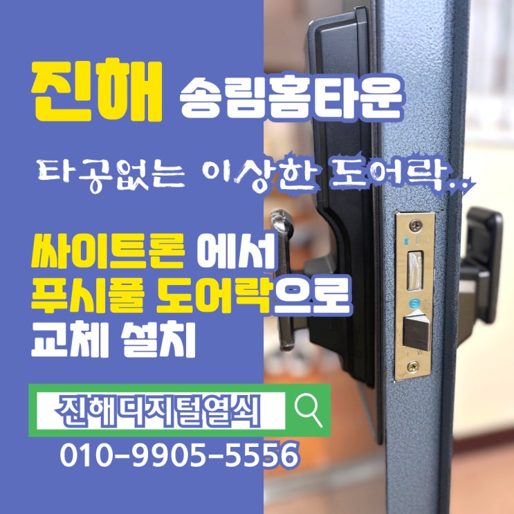 진해 송림홈타운 모티스 자리 없는 싸이트론 도어락 교체 설치 진해 24시 열쇠