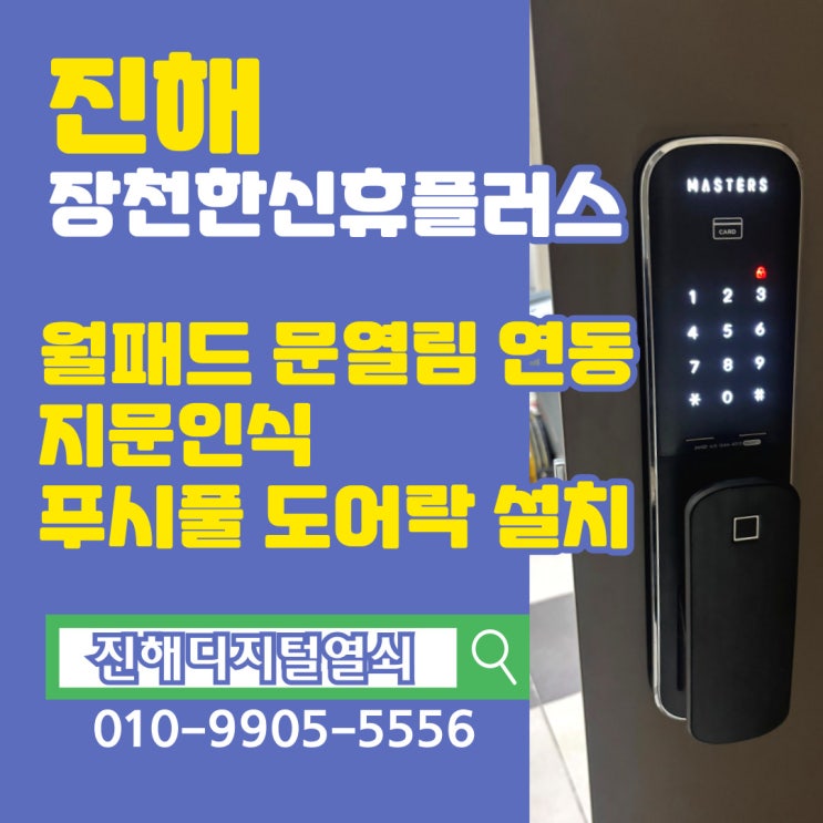 진해 24시 열쇠 장천동 한신휴플러스 유니코 마스터즈 지문인식 푸시풀 도어락 및 월패드 문열림 연동 설치