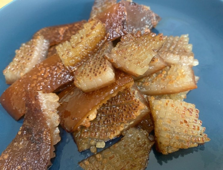 돼지껍데기는 제가 즐겨먹는 음식중 하나에요 가끔 대형마트 장보러 가면 돼지껍데기 조리된걸 파는 코너가...