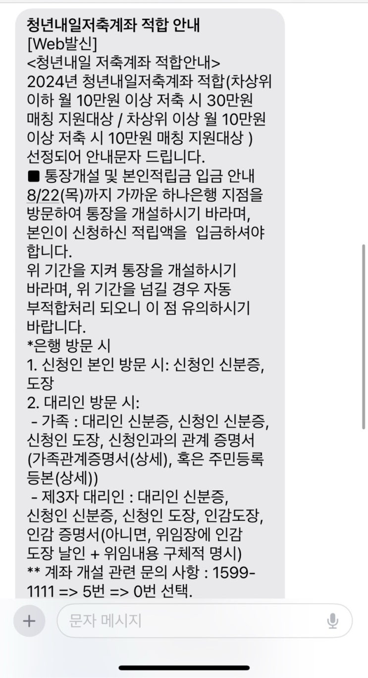 [청년내일저축계좌/ 3탄] 보완서류 및 선정자 발표_ 문자 통지, 계좌 개설 안내(⭐️최종선정완료, 프리랜서 소득서류 안내)