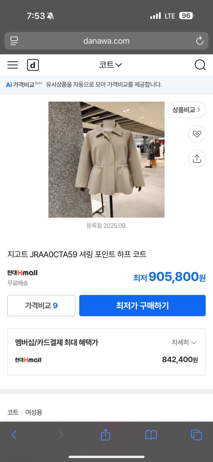 오늘 산거 처음 입어보는데 마음에 들어서 가격 인터넷에서 좀 싸게 올라온 거 있으면 베이지색도 사려고 ...
