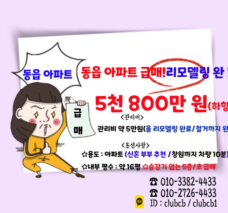 창원 의창구 동읍 리모델링 아파트 급 매매 5층 엘베x