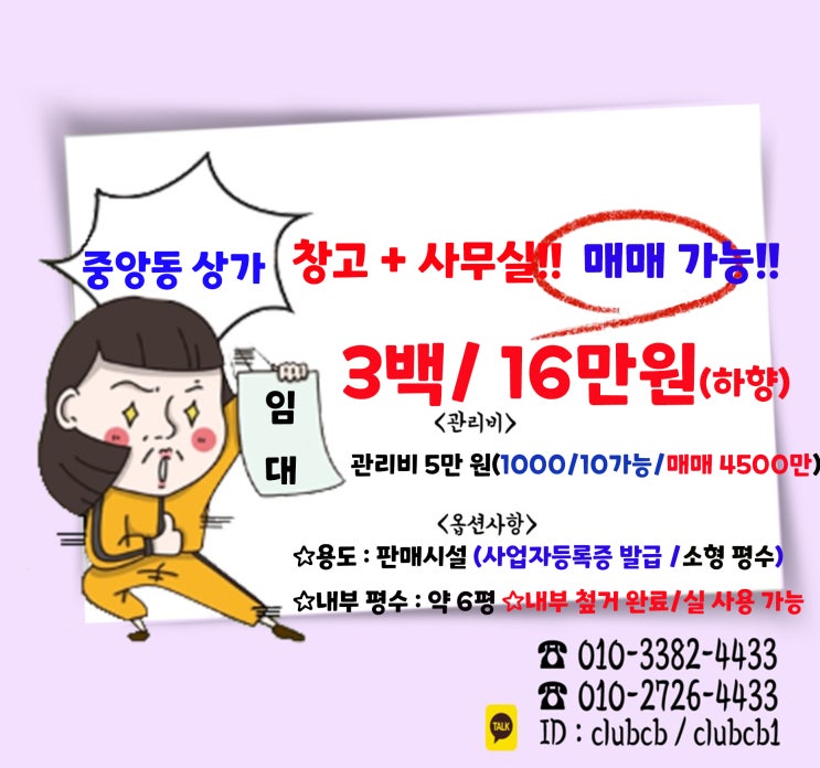 창원 중앙동 상가 임대 급매매 사무실 작업실 공방 무권리금