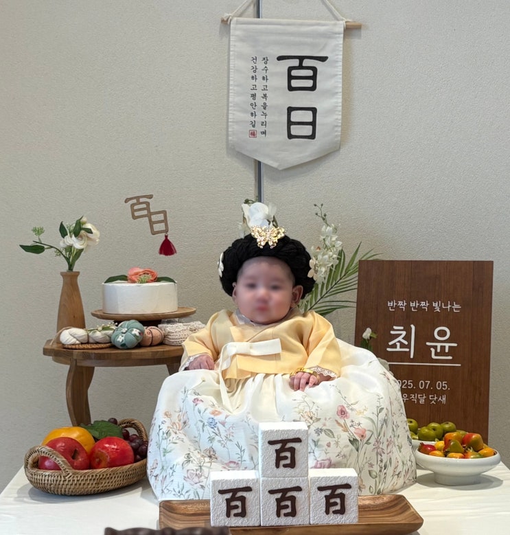 요즘에는 돌잔치도 소규모로 축소하는 추세라, 100일은 기념 사진만 찍어주고 돌잔치 때 제대루 기념해야지...