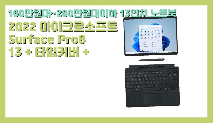 160만원대~200만원대이하 13인치 노트북 인기제품 2022 마이크로소프트 Surface Pro8 13 + 타입커버 + 슬...