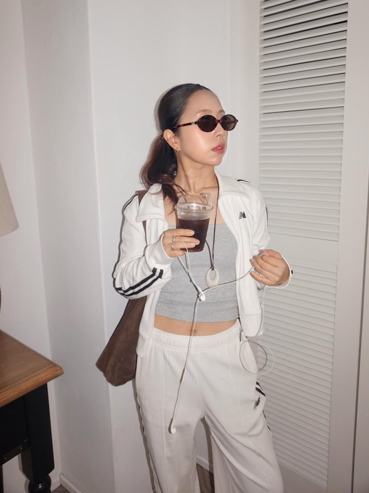여친룩 너무 예쁘다는 윈터 뉴발란스 트레이닝복 공항패션