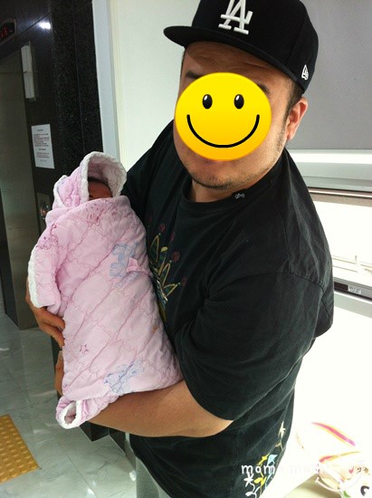 모모 태어나고 6일째만에 처음 안아보는 모모 아버님. 그런데.. 무슨 아빠가 수염을....