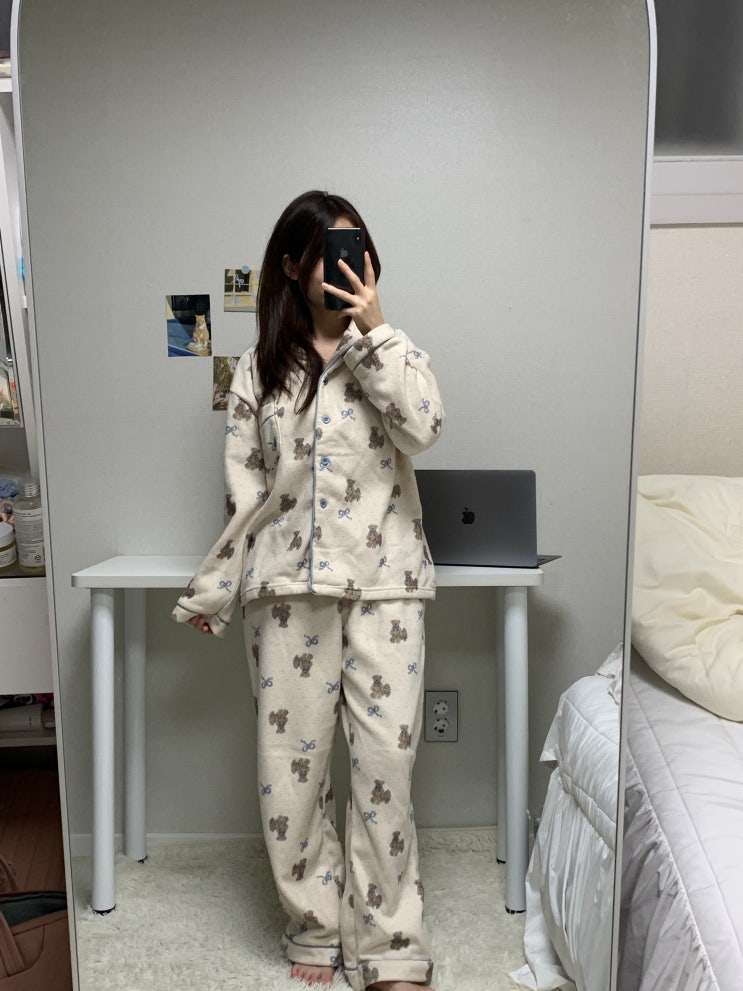 인기 많은 에이원 피치기모 라운드 잠옷 상하 세트로 포근한 밤 보내기