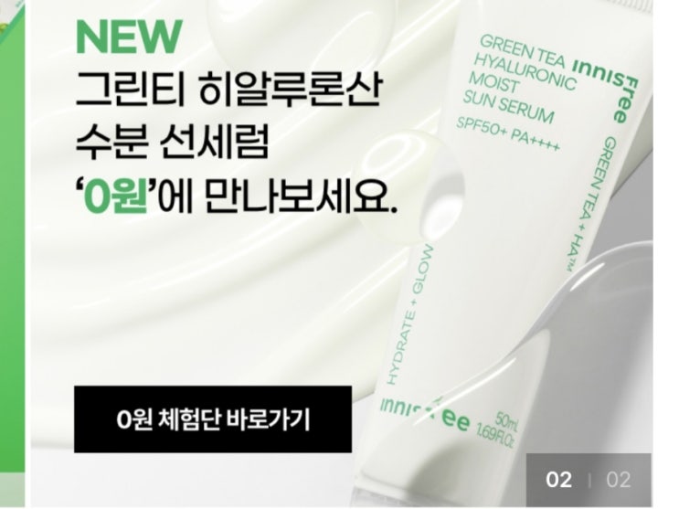 안녕하세요? 5/1일 출시예정인 이니스프리 신상수분선세럼 그린티 히알루론산 수분 선세럼을 0원에 만나볼 ...