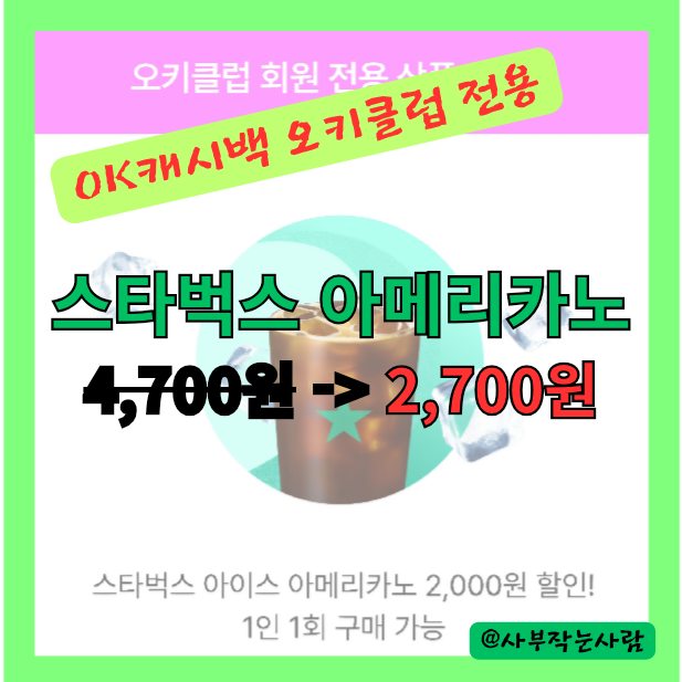OK캐쉬백 오키클럽 전용 스타벅스 할인 2700원에 구매 8월 오데이 편의점 CU 혜택