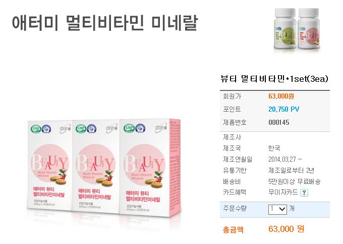 애터미 멀티비타민 미네랄
