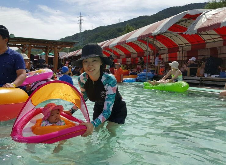 #첫수영장 보통 목튜브로 물에 적응해야 하지만 바로 실전으로 들어간 율. 스윔웨이즈 첫 개시. 혹시나 했...
