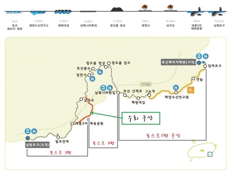 올레 4코스 이제 올레코스중 가장 긴 구간이라는 올레 4코스를 걸을 시간입니다 코스 거리가 23.1 Km 입니...