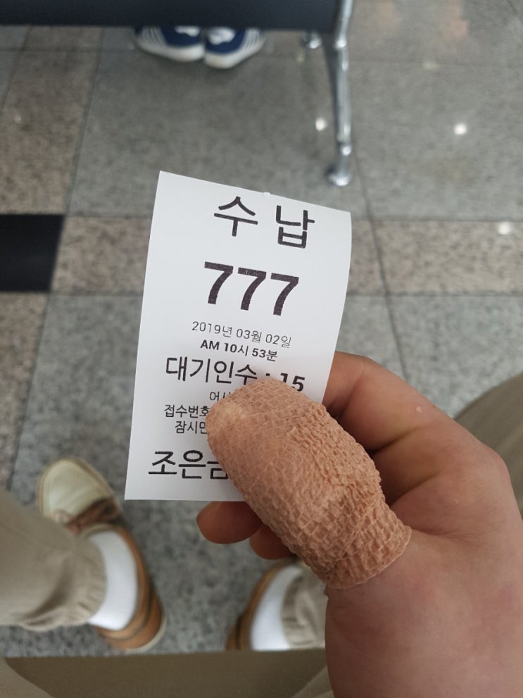 제가 일하다가 손가락을 좀 심하게다쳤데ㅠㅠ... (여보 미안해 걱정하게 만들어서ㅠ) 치료를 받는 후 수납...