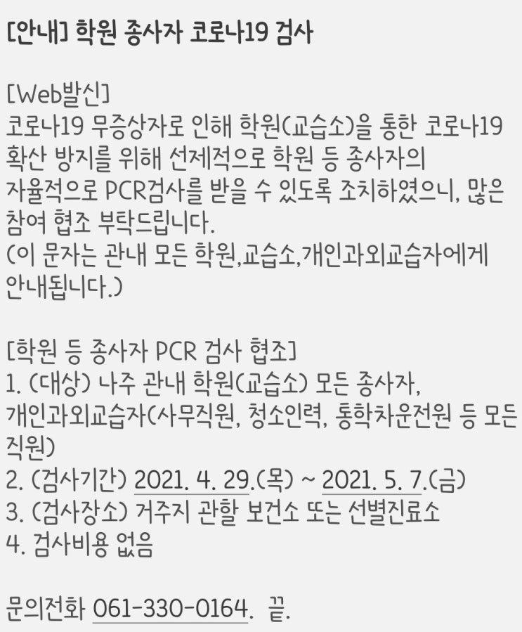 나주혁신도시영어학원_일상12. 코로나검사
