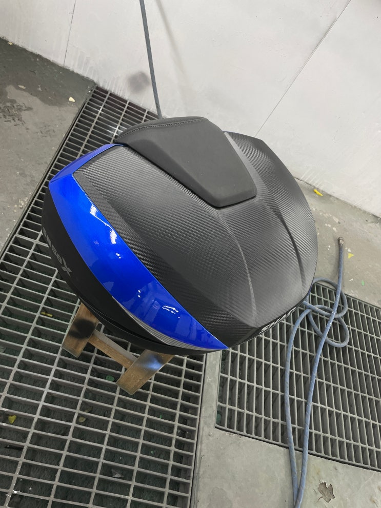 오토바이 탑박스 아쿠아블루 캔디도색 아무데서나하실껍니까?