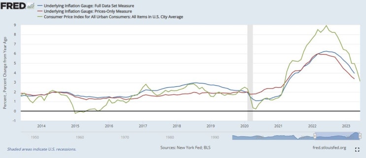FRED 블로그 해석 및 Underlying Inflation Gauge 설명 및 물가지표