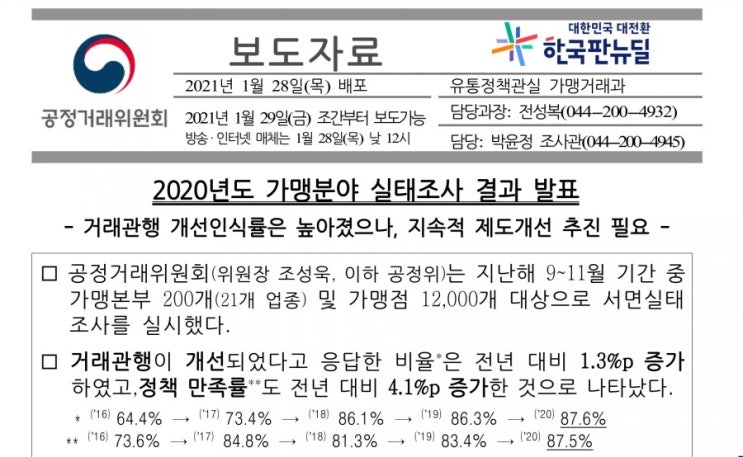 [가맹거래사 홍미미] 공정거래위원회 2020년도 가맹분야 실태조사 결과 발표