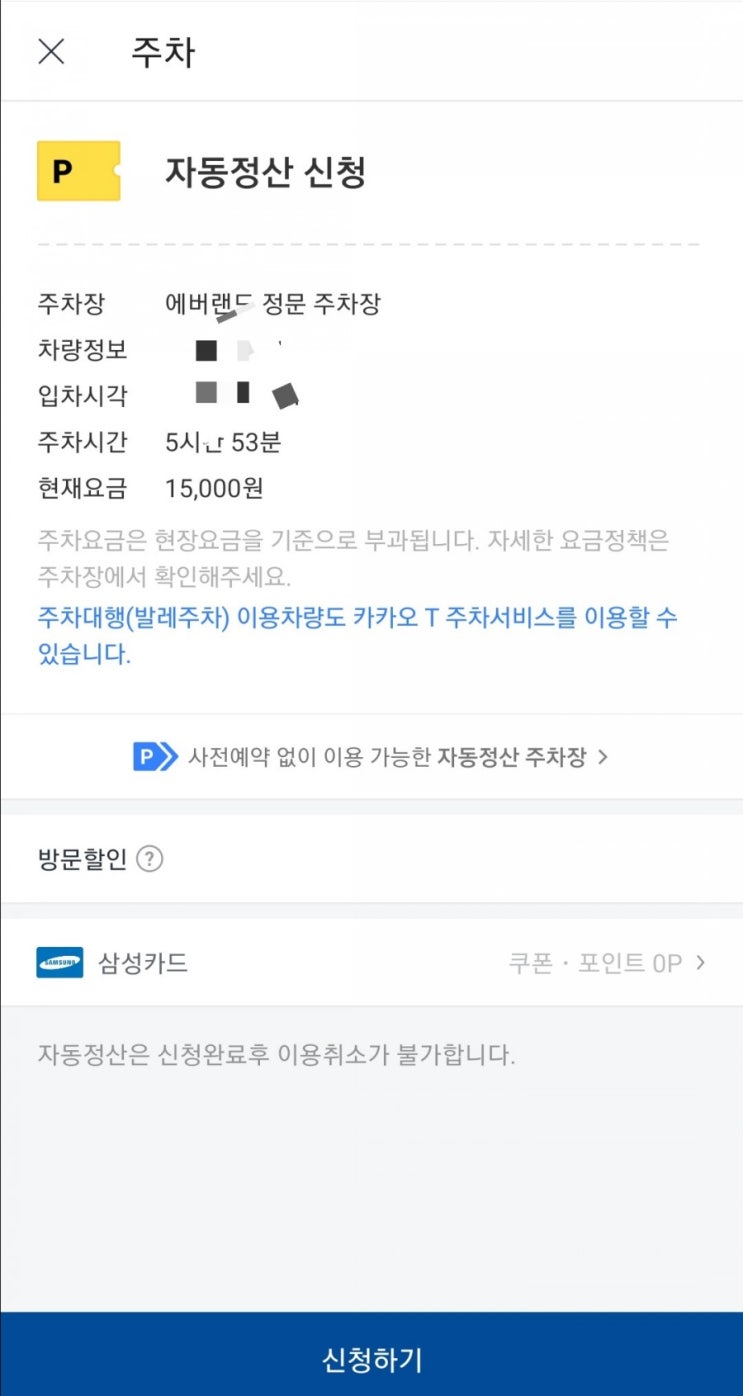 에버랜드 정문이 유료주차장으로 바뀌면서 출차 시 카카오티 앱으로 사전 정산시 할인율이 제일 크다. 주차...