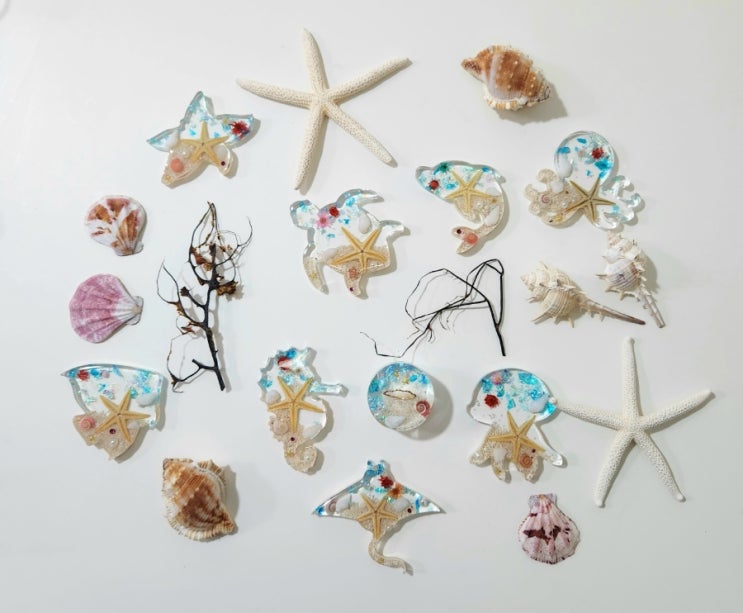 레진아트 바다키링만들기 귀여운 해양동물 몰드에 2액형 레진과 다양한 자연물로 바다만들기 진행했답니다....